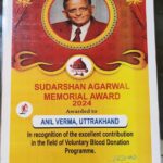 रक्तदाता शिरोमणि अनिल वर्मा “सुदर्शन अग्रवाल मेमोरियल अवॉर्ड-2024” से सम्मानित*