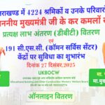 देहरादून 27 दिसंबर। मुख्यमंत्री पुष्कर सिंह धामी ने शनिवार को मुख्यमंत्री कैंप कार्यालय में आयोजित कार्यक्रम में उत्तराखण्ड भवन एवं अन्य सन्निर्माण कर्मकार कल्याण बोर्ड के अंतर्गत विभिन्न योजनाओं के 4224 श्रमिक लाभार्थियों के खातों में डीबीटी के माध्यम से ₹12 करोड़ 89 लाख 85 हजार की धनराशि हस्तान्तरित की। इसके साथ ही मुख्यमंत्री ने राज्य के 191 कॉमन सर्विस सेंटरों (सीएससी) में श्रमिकों की सहायता के लिए विशेष व्यवस्था का शुभारंभ भी किया।