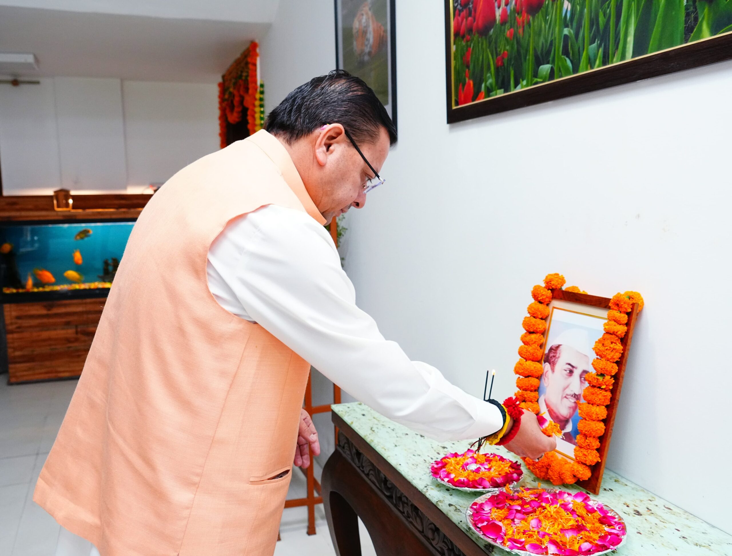 देहरादून 17 मार्च। मुख्यमंत्री पुष्कर सिंह धामी ने उत्तर प्रदेश के पूर्व मुख्यमंत्री हेमवती नंदन बहुगुणा की पुण्य तिथि के अवसर पर मुख्यमंत्री आवास में उनके चित्र पर श्रद्धा सुमन अर्पित कर भावपूर्ण श्रद्धांजलि दी।