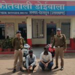 अभियान के तहत नशा तस्करो के विरुद्ध प्रभावी कार्यवाही करते हुए दिनांक 15 मार्च को डोईवाला पुलिस द्वारा मुखबिर से प्राप्त सूचना पर संदिग्ध व्यक्ति/वाहन चैकिग के दौरान ग्राम हंसुवाला से 02 नशा तस्करों फैजान पुत्र फरमान अंशुल पाल पुत्र राजकुमार को 21.45 ग्राम अवैध स्मैंक के साथ गिरफ्तार किया गया। अभियुक्तों द्वारा तस्करी मे प्रयुक्त किये जा रहे वाहन मो0सा0 सं0- UK17X-4521 व स्कूटी स0-UK14F-7063 को सीज किया गया। अभियुक्तो के विरुद्ध कोतवाली डोईवाला पर धारा-8/21/29/60 NDPS ACT पंजीकृत किया गया।