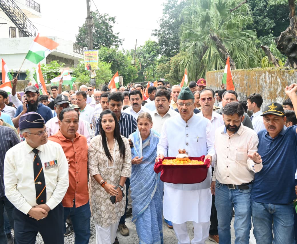 शहीद सम्मान यात्रा 2.0 : शहीद लेफ्टिनेंट प्रतीक आचार्य के घर पहुंचकर सैनिक कल्याण मंत्री गणेश जोशी ने किया आंगन की मिट्टी का संग्रहण